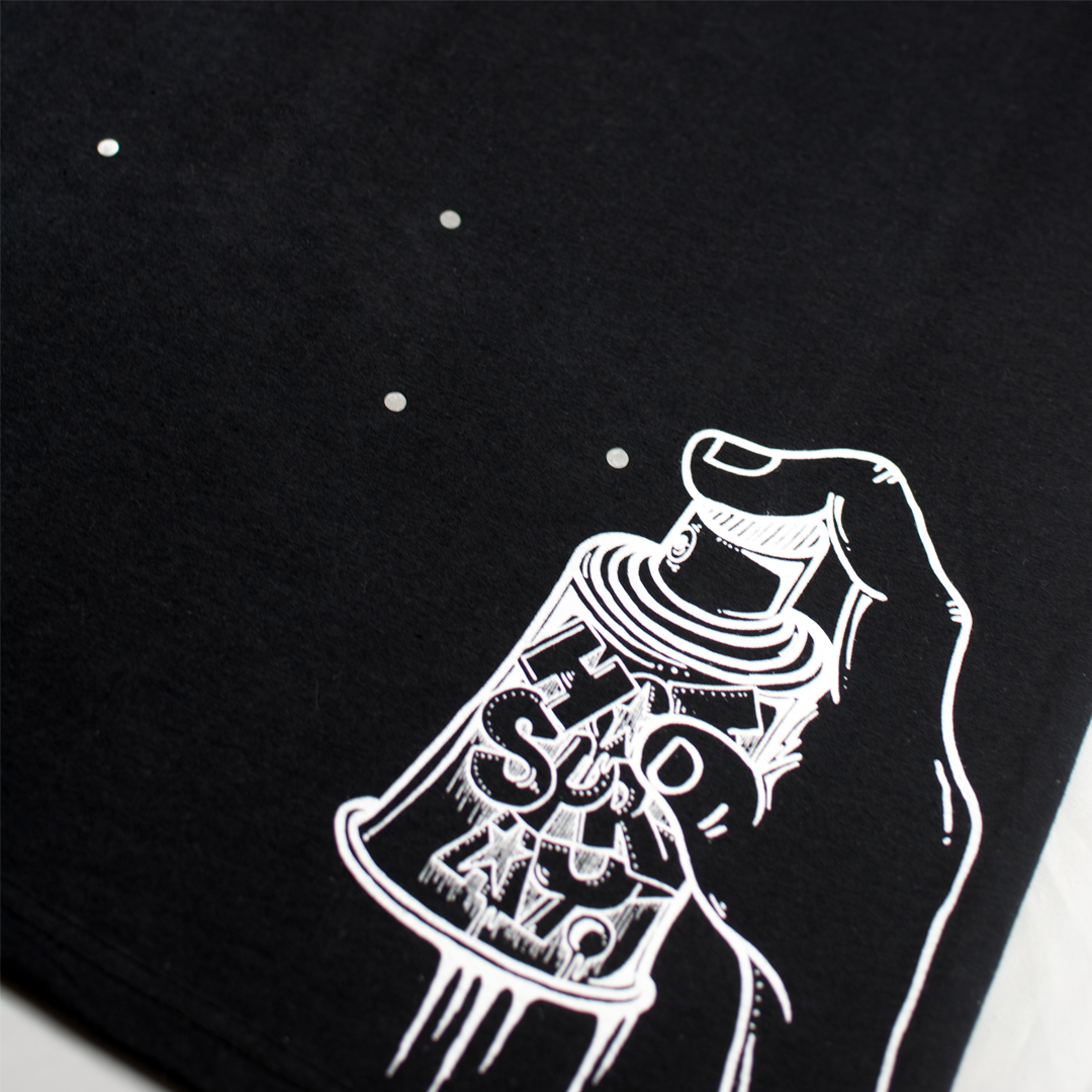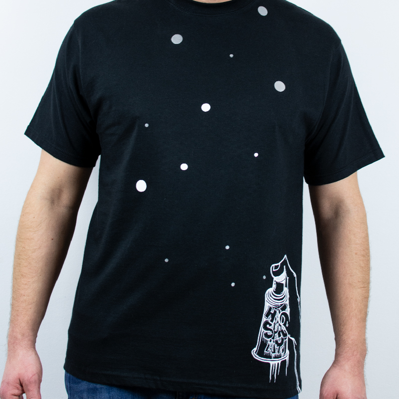 Czarna koszulka z logo firmy na plecach, wykonanym w srebrnym kolorze z trwałej folii flex, to połączenie minimalistycznego stylu z hołdem dla klasyki kolei i metra. Głęboka czerń materiału podkreśla kontrastowy, metaliczny nadruk z folii flex, nawiązując do surowej estetyki stalowych wagonów, okrągłych świateł EN57 a także tuneli i infrastruktury kolejowej. Z przodu mały akcent logo na piersi. Wysokiej jakości 100% bawełna o gramaturze 205 g/m² zapewnia wysoki komfort noszenia i wygodę podczas codziennych miejskich wypadów.